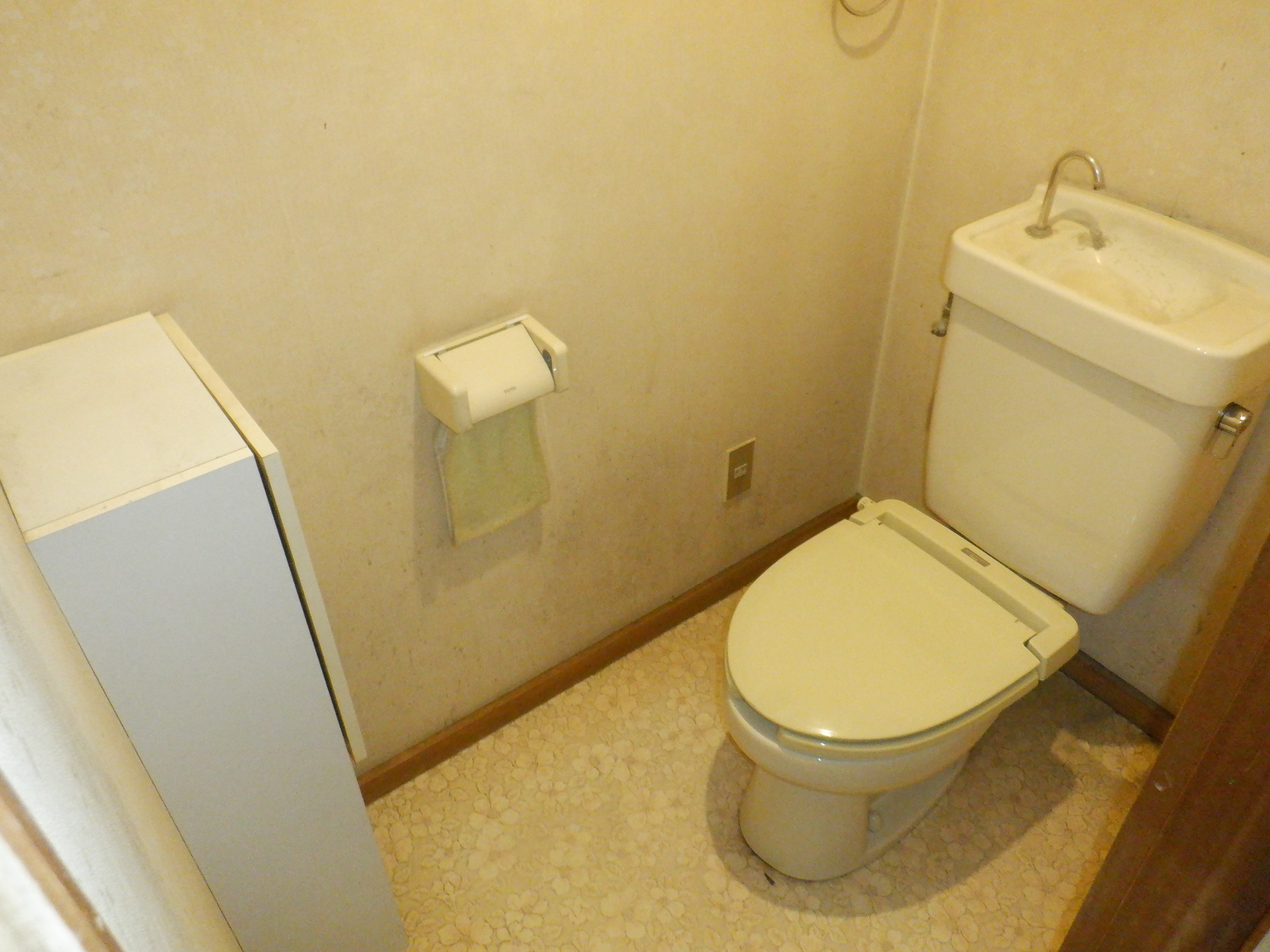 トイレ 事例詳細 加須市T様 トイレリフォーム トイレリフォーム after before after before 施工期間 1日 内容 ・TOTO GG-800 ・交換工事費 ・既存トイレ処分費 ・床CF貼り、天井・壁クロス貼替え ・紙巻器・タオルリング ・ウォール収納キャビネット ・照明、換気扇交換